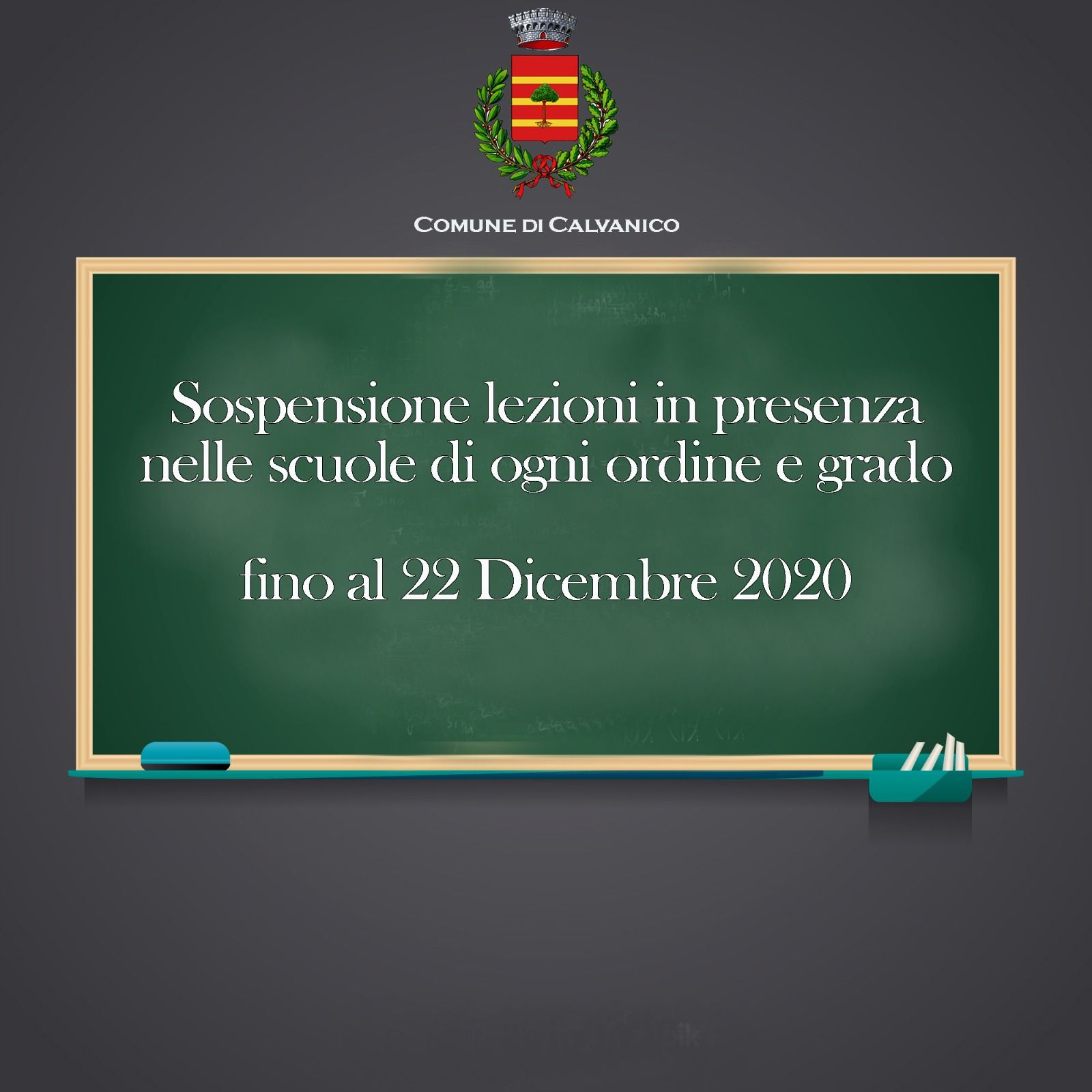 Sospensione lezioni in presenza fino al 22 Dicembre 2020